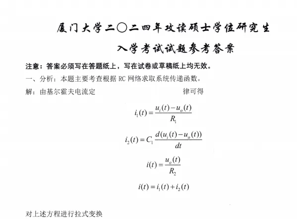 2008-2025年厦门大学844自动控制原理考研真题参考答案