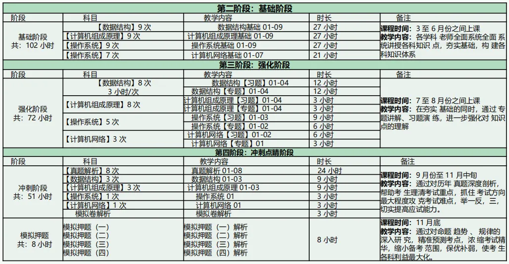 教学内容:在这个阶段,大家要静下心来,对408的四门教材进行精读,将每一个知识点都理解透彻。可以结合研趣的基础课程,跟随老师的讲解,深入理解教材内容。