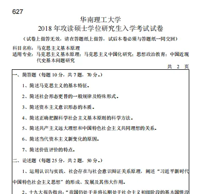 2004-2026年华南理工大学624马克思主义基本原理考研真题试卷【19年后回忆版】