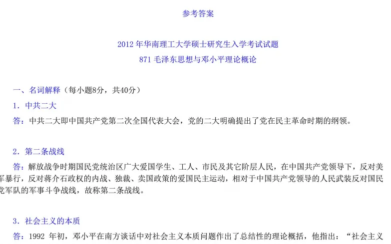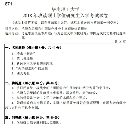 2004-2026年华南理工大学825专业综合考研真题试卷【19年后回忆版,往年科目:871毛泽东思想和中国特色社会主义理论体系概论】