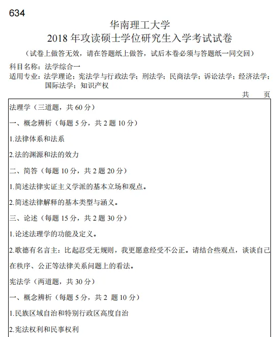 2007-2026年华南理工大学628法学综合一(含法理学、宪法学)考研真题试卷【不含19,全网缺】