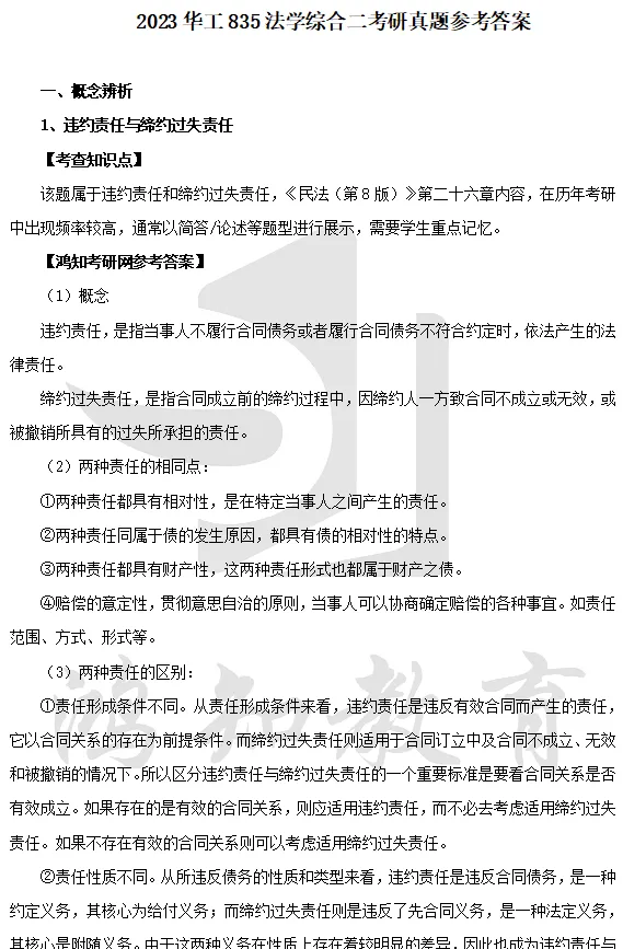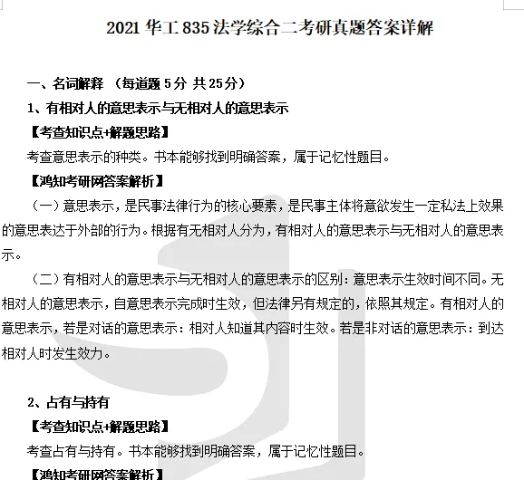 2011-2025年华南理工大学835法学综合二(含民法学、刑法学)考研真题答案详解【不含19,全网缺】