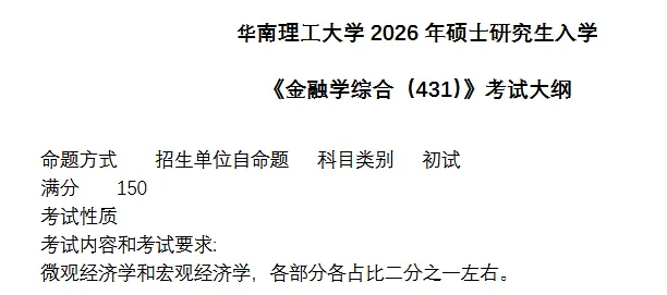 2026年华南理工大学431金融学综合(832经济学)考研真题与答案【回忆版】