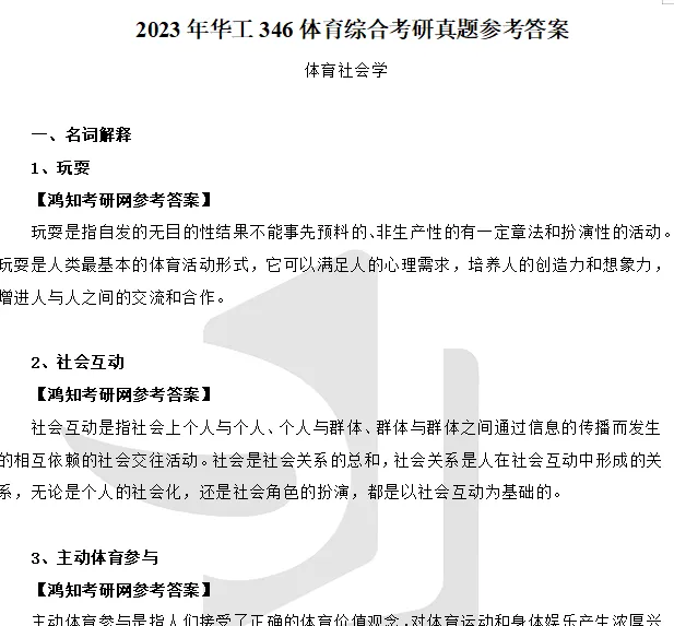 2023年华南理工大学346体育综合考研真题(回忆版)