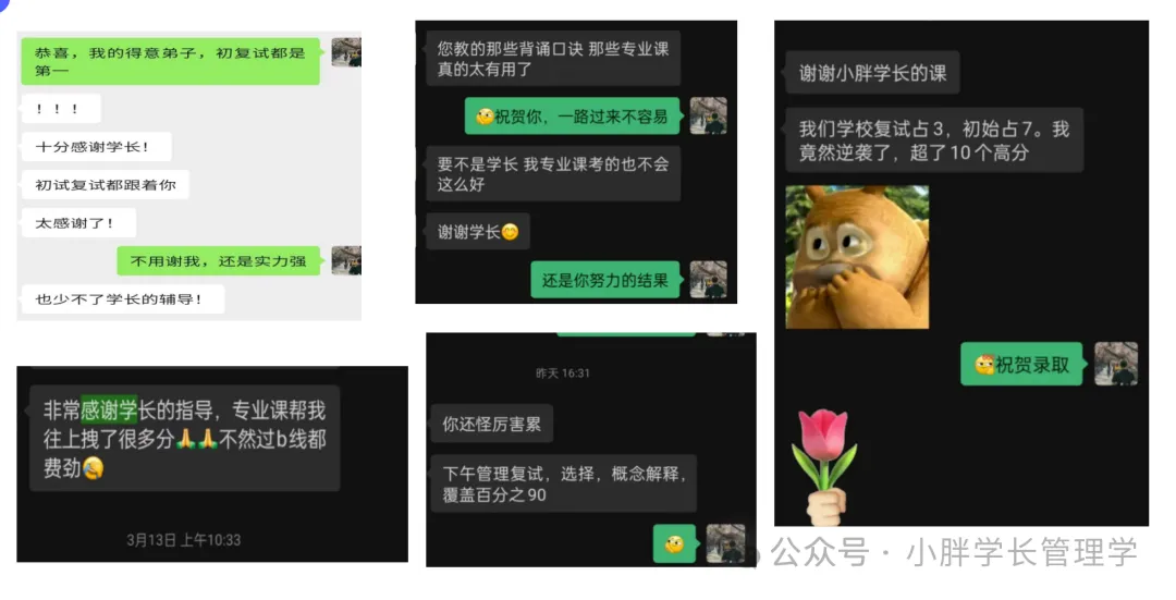小胖学长今年已经是第9年在做考研管理学辅导,独创“案例口诀版”带背课备受学员好评!课程同时配备独家【李彦斌管理学高分笔记+华电833历年真题及答案汇总】,初试全程的一对一答疑解惑,为你的考研保驾护航!欢迎2027报考华电北京同学咨询报名!!价格说明请翻到05