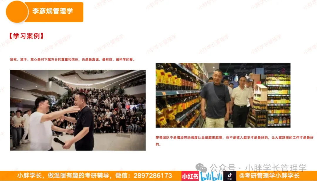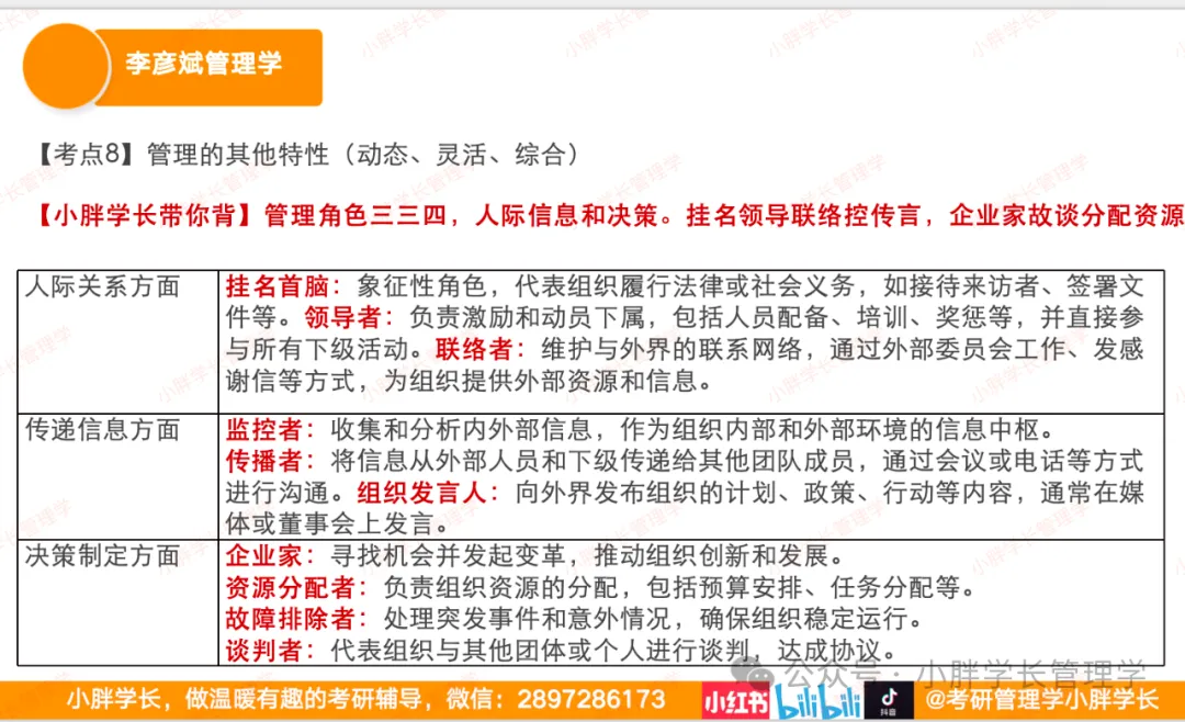课程讲解中摆脱枯燥的念书讲课,借助课件的形式进行讲解逐个考点的梳理、讲解和带背,保证学习的同学用最短的时间进行最高效的有效复习!小胖学长的李彦斌管理学课程为全网独家讲解!!