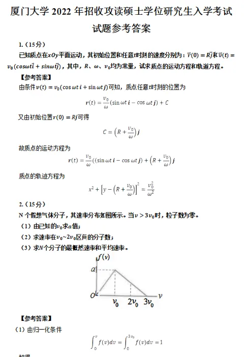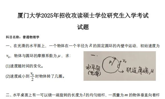 2000-2025年厦门大学850普通物理学考研真题试卷(不含10)2011-2024年厦门大学850普通物理学考研真题参考答案【23-24手写版】
