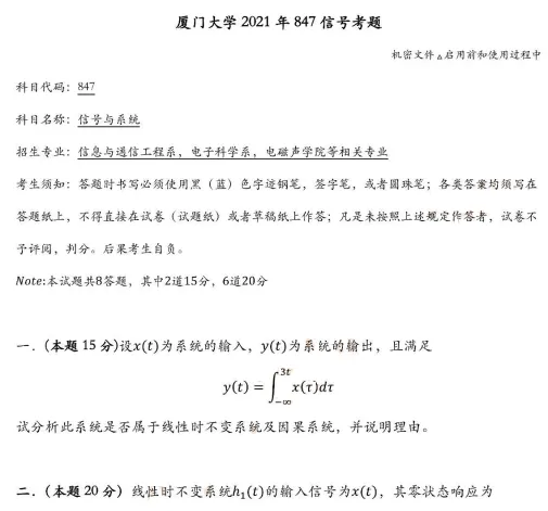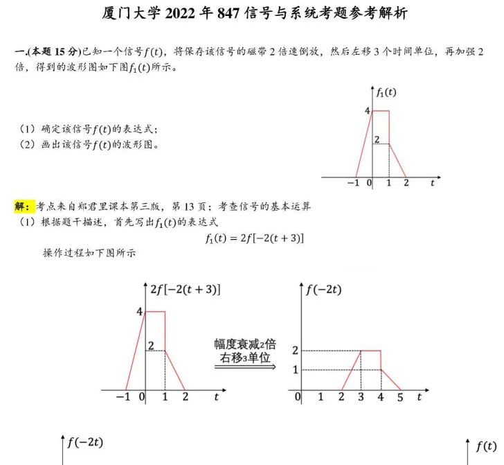 1998-2025年厦门大学847信号与系统考研真题试卷2004-2025年厦门大学847信号与系统考研真题参考答案