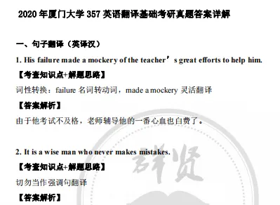 2010-2020年厦门大学357英语翻译基础考研真题参考答案