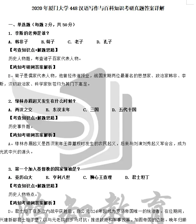 2010-2020年厦门大学448汉语写作与百科知识考研真题参考答案