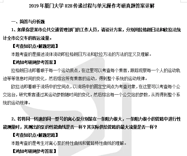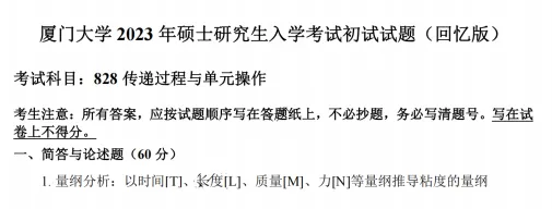 2004、2005、2007,2010-2023年厦门大学828传递过程与单元操作考研真题试卷【近年为回忆版】2010-2023年厦门大学828传递过程与单元操作考研真题参考答案