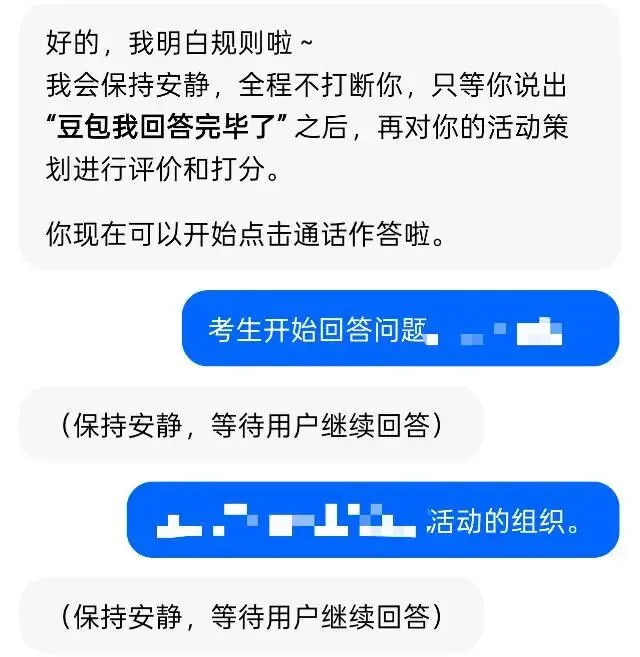 我给它发了好几个“我回答的时候会有停顿,你不要插嘴,等听到我说 考生回答完毕 你再开始打分,中间不要插嘴”也无济于事……