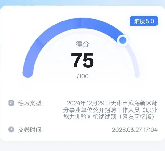 这次因为去了麦麦,所以做了一套天津事业编的职测题。