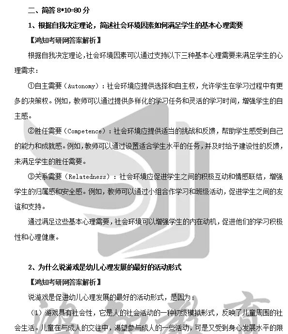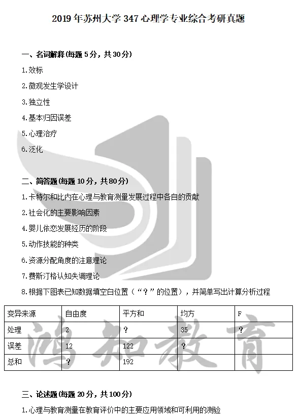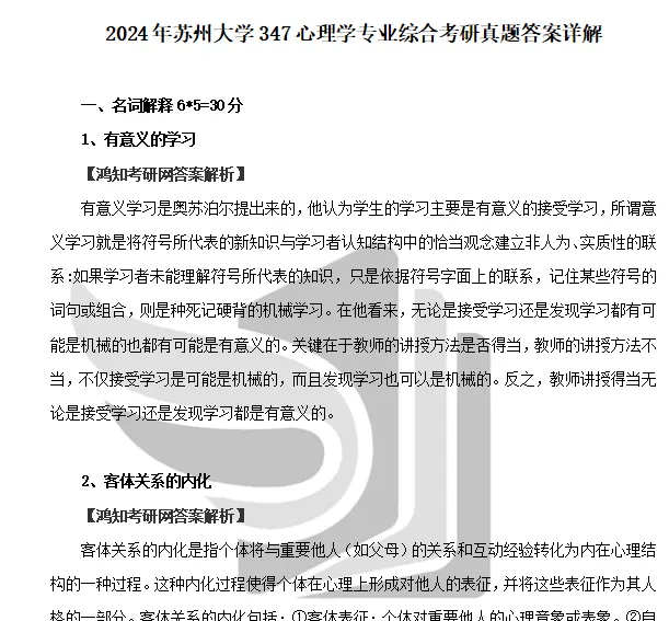 2011-2026年苏州大学347心理学专业基础综合考研真题参考答案