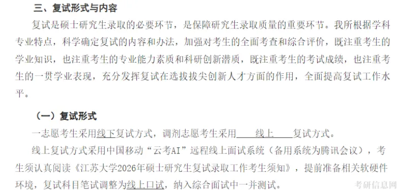 一志愿考生采用线下复试方式,调剂志愿考生采用线上复试方式。