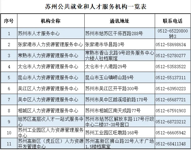 若你的人事档案保管在苏州的公共就业人才服务机构,有档案方面的问题,可向存档机构联系咨询。具体联系方式如下: