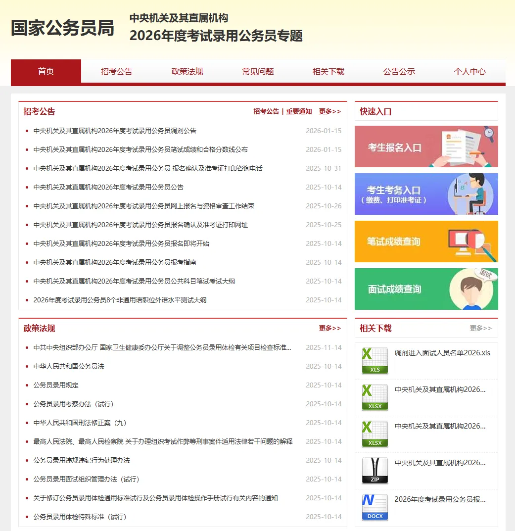 最近有朋友询问推荐考公的一些网站、资料什么的,这里做一下简单盘点分享地址: http://bm.scs.gov.cn/pp/gkweb/core/web/ui/business/home/gkhome.html▼各省人事考试网/人社厅/公务员局(搜索“XX省人事考试网”)