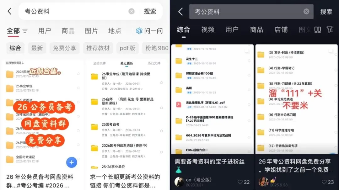 道理其实很直白:考公、考研的人对资料需求特别大,真题、知识点总结、名师笔记这些免费送,很容易吸引到目标用户;大家领资料只要点我的专属链接存到网盘就行,不管是新用户还是老用户转存,我都能拿到佣金,全程不用花钱,也基本不用售后。