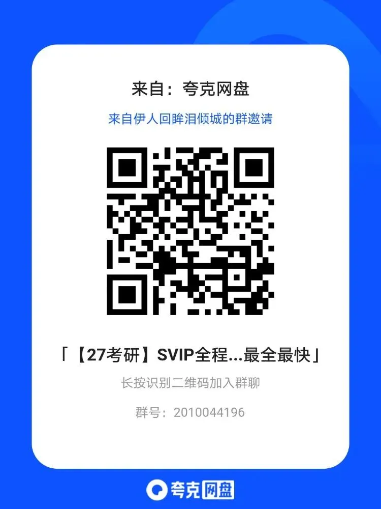后续课程持续免费更新请加考研夸克网盘群:2010044196,或者也可直接扫描下方夸克网盘群二维码获取